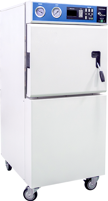 선진공 > 가열 > 멸균 > 증기 배출 > 진공건조 > 완료 의 공정이 자동 진행됩니다.